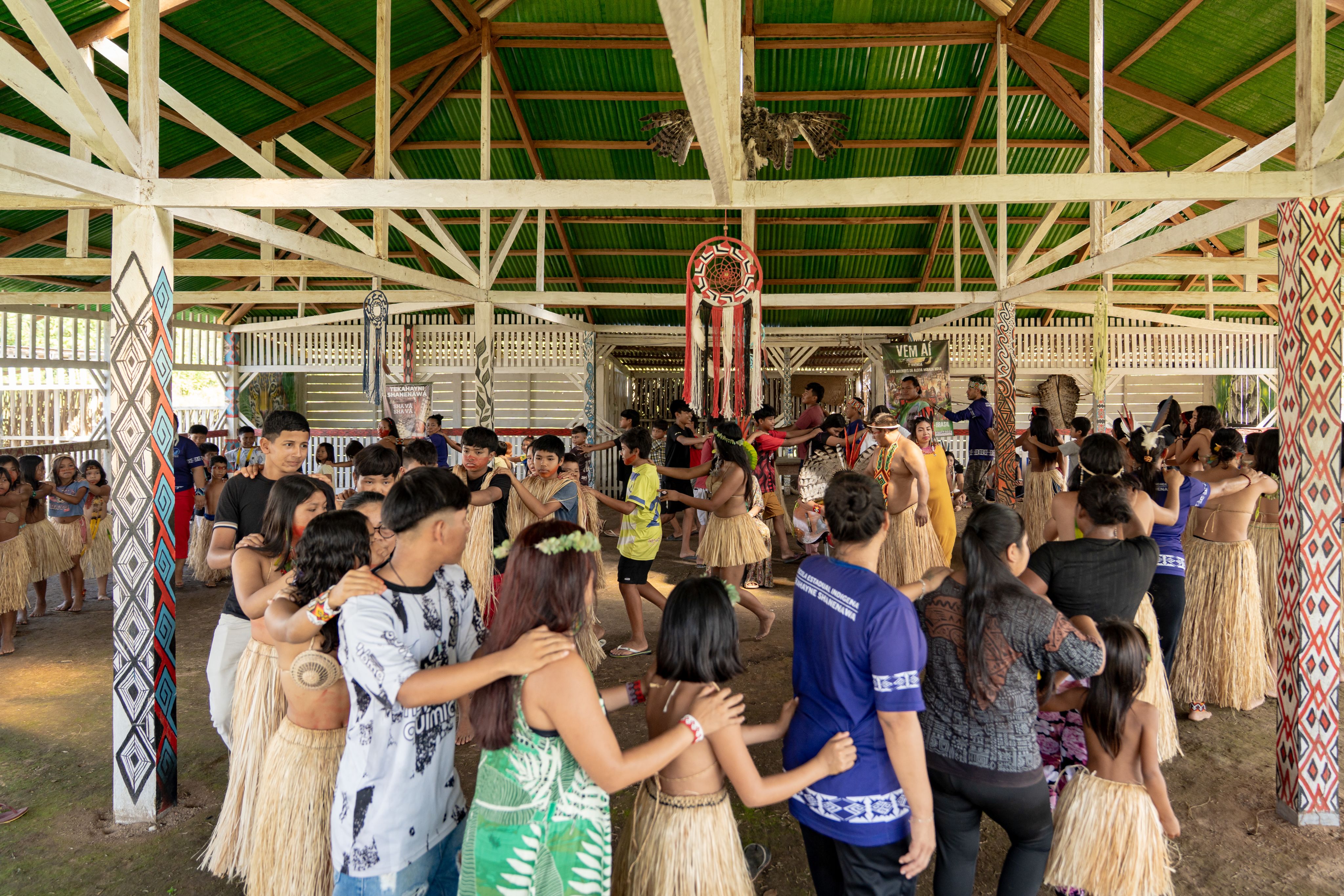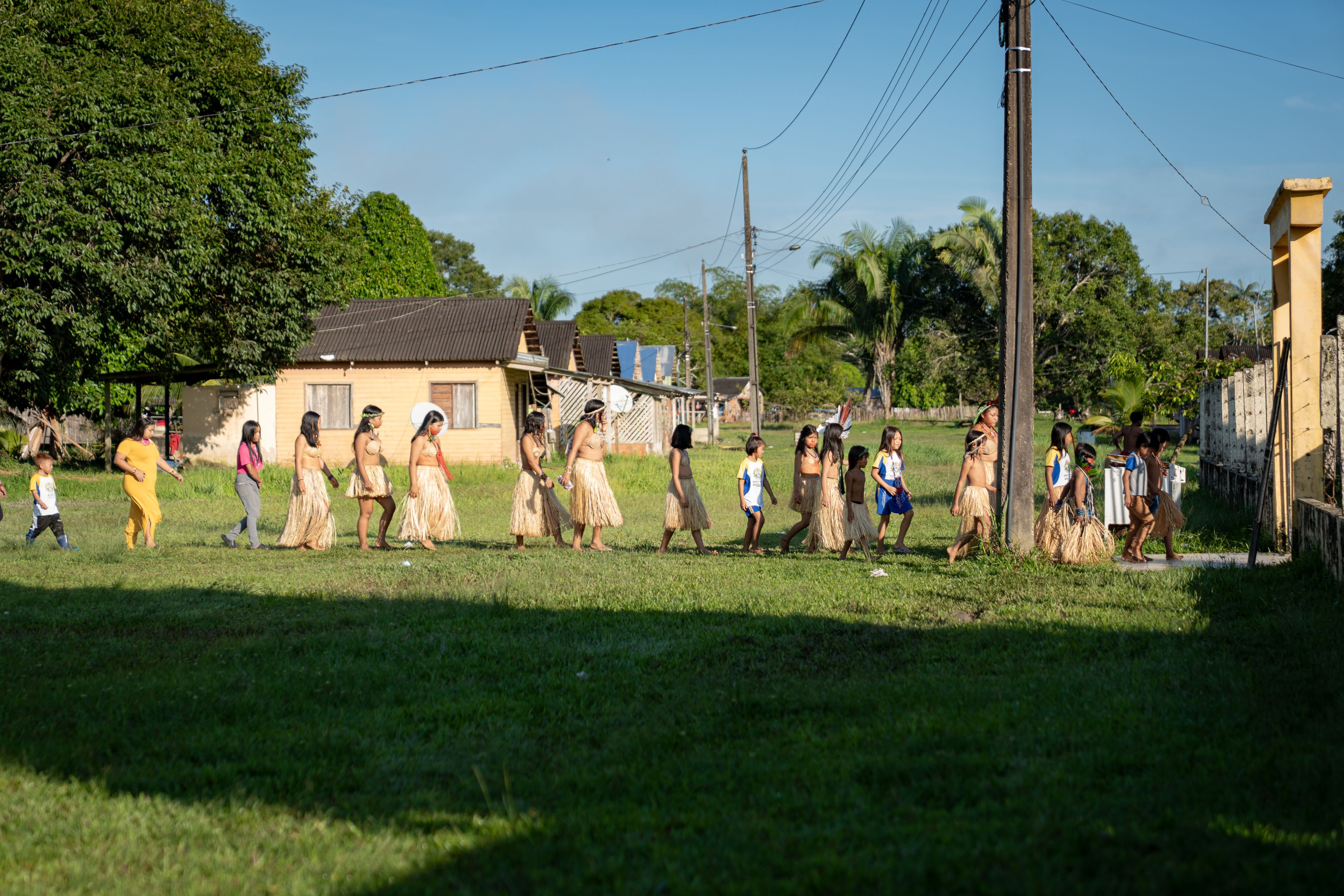 Na aldeia indígena de Nova Morada, a escola se abre diretamente para a floresta. As aulas dentro da escola são inseparáveis da vida fora dela. As crianças aprendem letras e números ao lado de danças, canções e histórias de seus ancestrais e dos rios, árvores e animais que compartilham seu lar.