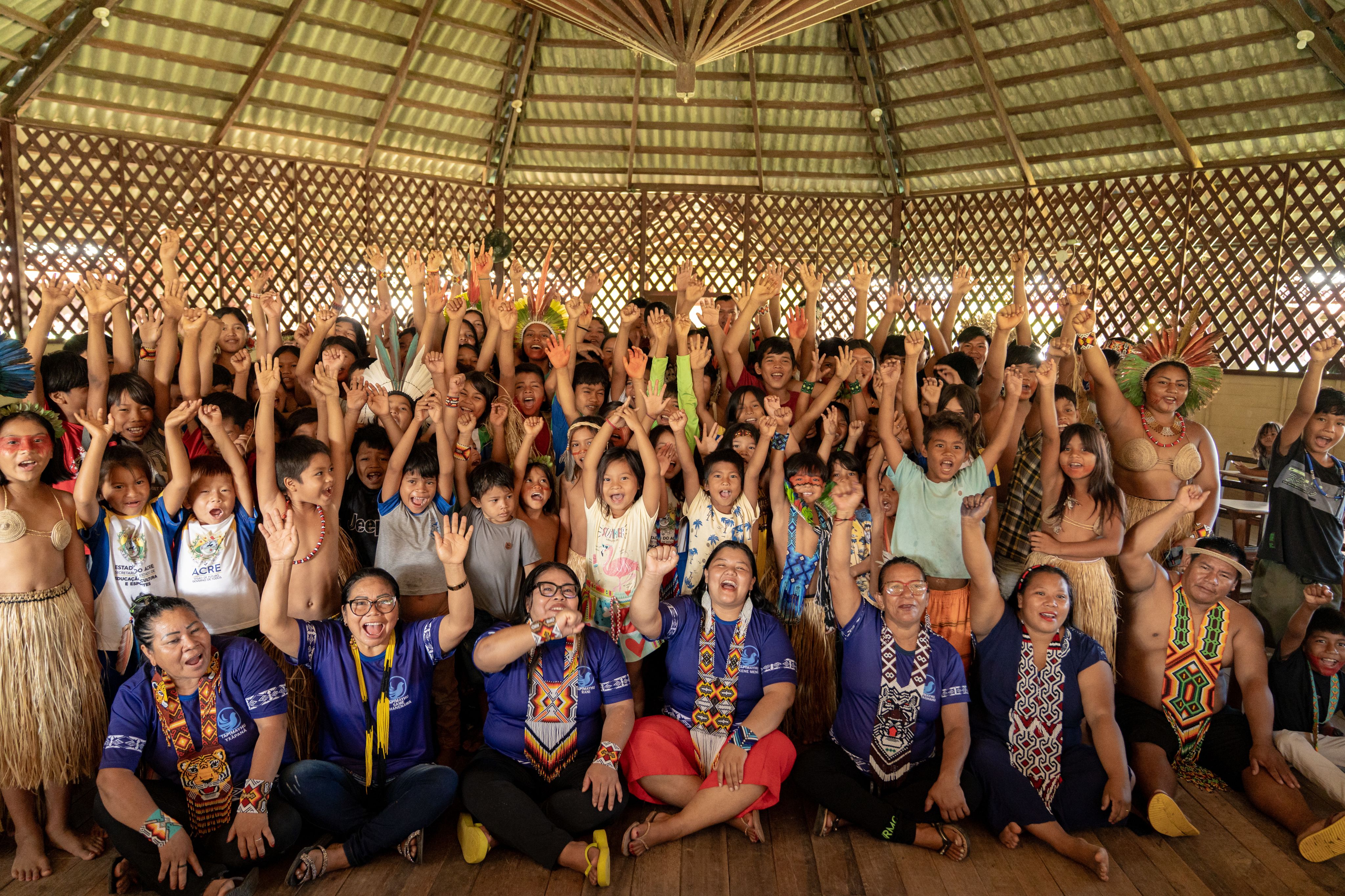 Ao lado dela, Edileuda Gomes de Araújo Shanenawa, ou Rani, dirige a escola, coordena a Organização dos Professores Indígenas do Acre (OPIAC) e trabalha como artesã com o grupo Purumã, um coletivo indígena que mantém vivos o artesanato tradicional e as práticas culturais para sustentar a identidade e os meios de subsistência locais. “A contribuição das mulheres indígenas em nosso território é essencial para a educação, a transferência do conhecimento ancestral e a manutenção da floresta.” Para Edileuda, a consulta afirma um direito fundamental: “O direito de escolher o que queremos em nossa realidade – o que vivemos todos os dias em nosso território, o que nossos filhos vão precisar, o que ainda está por vir. Existir é resistir.”