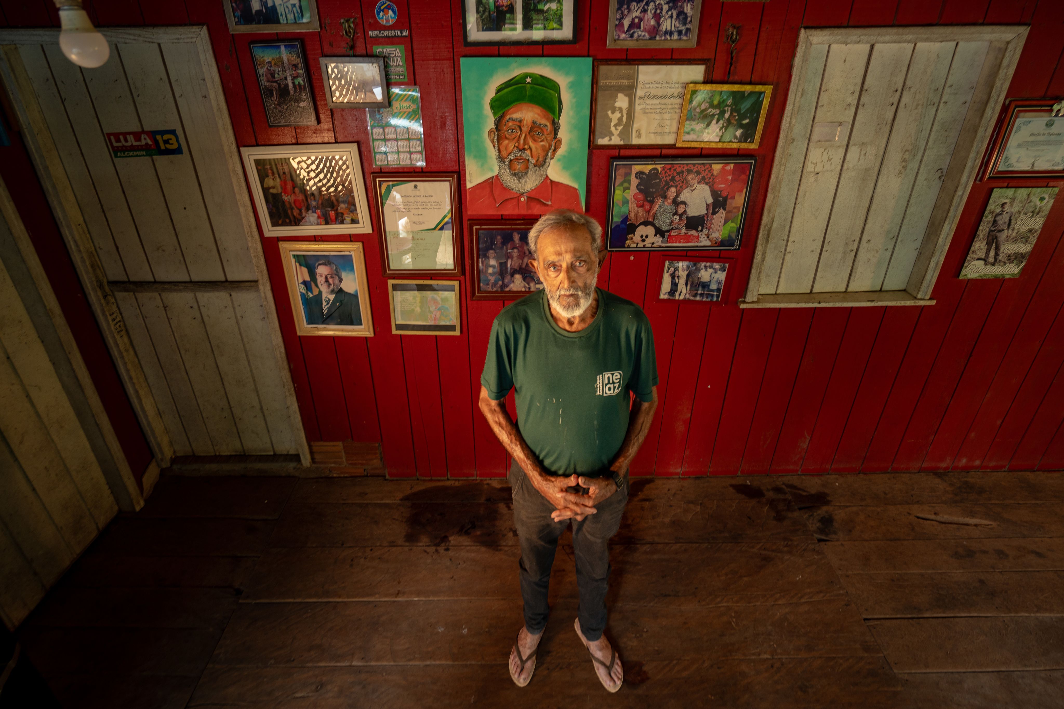 Raimundo “Raimundão” Mendes de Barros está sentado em sua casa, em seu seringal onde passou quase oito décadas trabalhando, manejando e defendendo a floresta. “Há dias em que quase morremos de calor”, diz ele. “Parece que estamos à beira de um incêndio.”