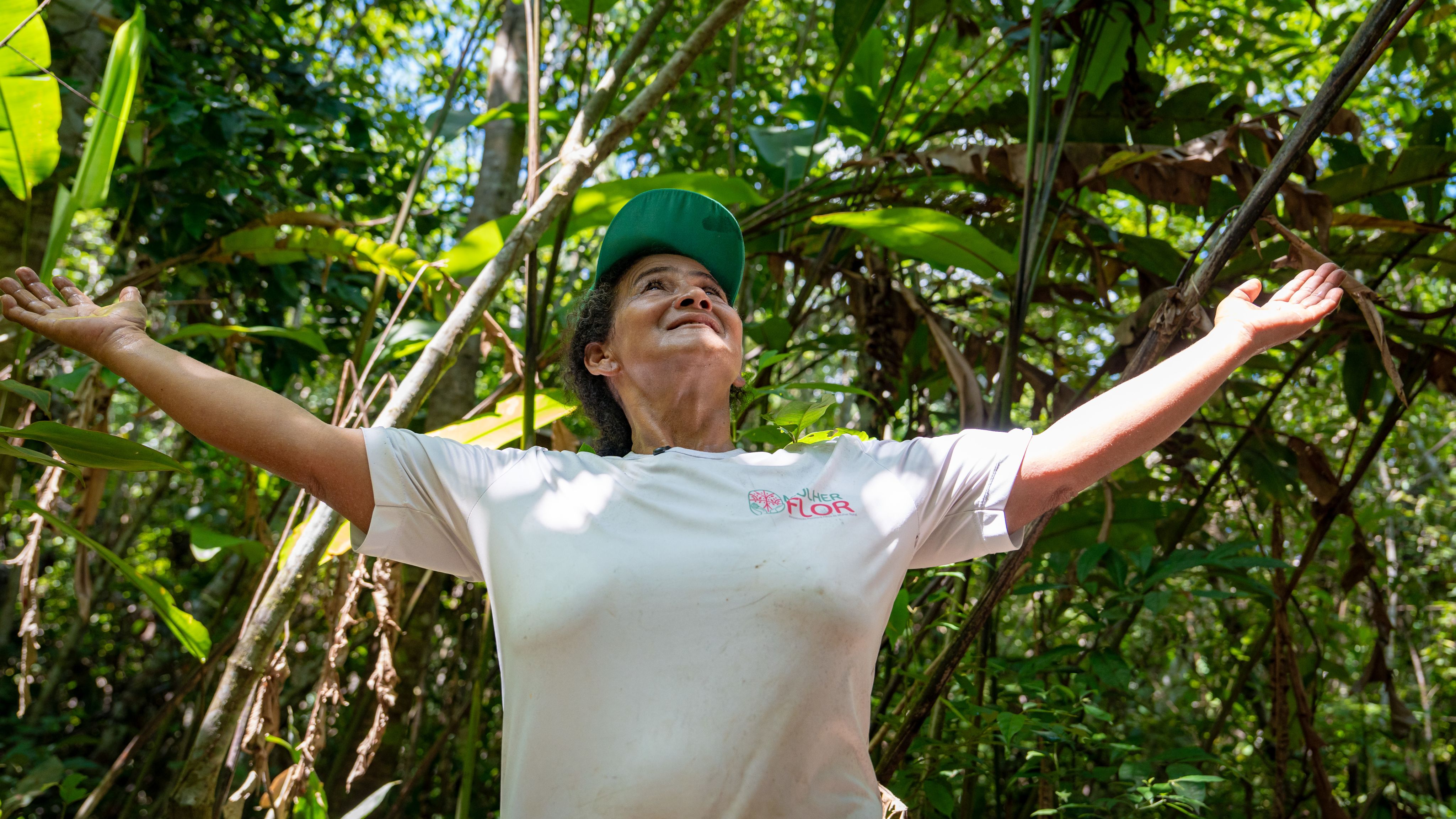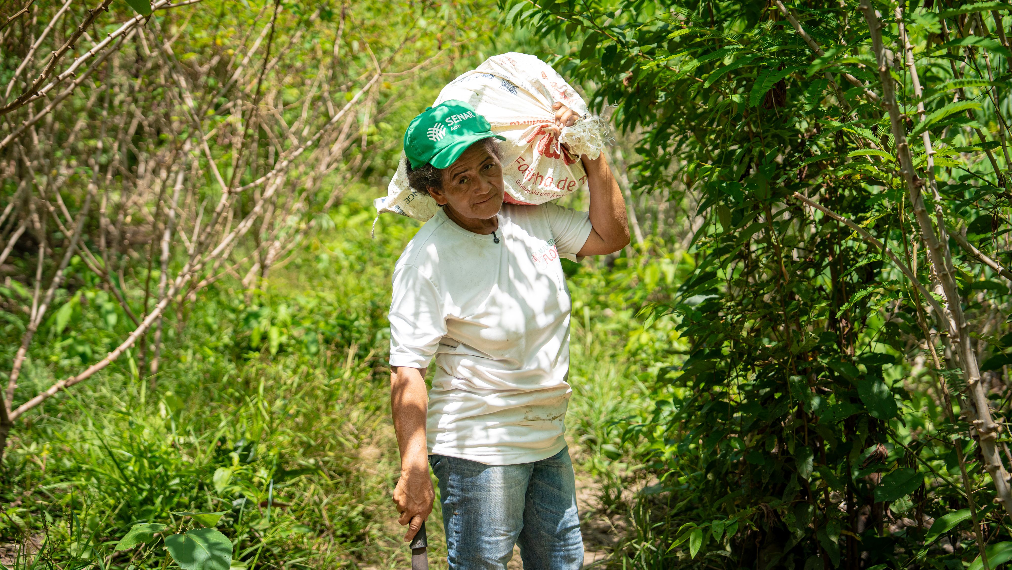 Entre elas está Renilda Santana, conhecida como Dona Branca. Ela começa seu dia antes do nascer do sol, caminhando pela floresta, cuidando de suas plantações e colhendo produtos da floresta que sustentam sua família e comunidade. Nascida e criada na Reserva Extrativista Riozinho da Liberdade, no Acre, uma área protegida criada em 2005, ela testemunhou décadas de mudanças, dificuldades e lutas e sabe que proteger a floresta é inseparável do apoio aos meios de subsistência. Por meio de sua liderança na Associação Feminina Força da Mulher Rural do Rio Liberdade, ela garante que as perspectivas das mulheres, que muitas vezes carregam os fardos mais pesados nas comunidades rurais, sejam ouvidas na governança local e nas consultas do Programa ISA Carbono. “Precisamos ser claras sobre o que queremos e precisamos”, diz ela. “E como queremos gerenciar e trabalhar com a biodiversidade em nosso território. Isso é crucial. Nosso mercado é a floresta.”
