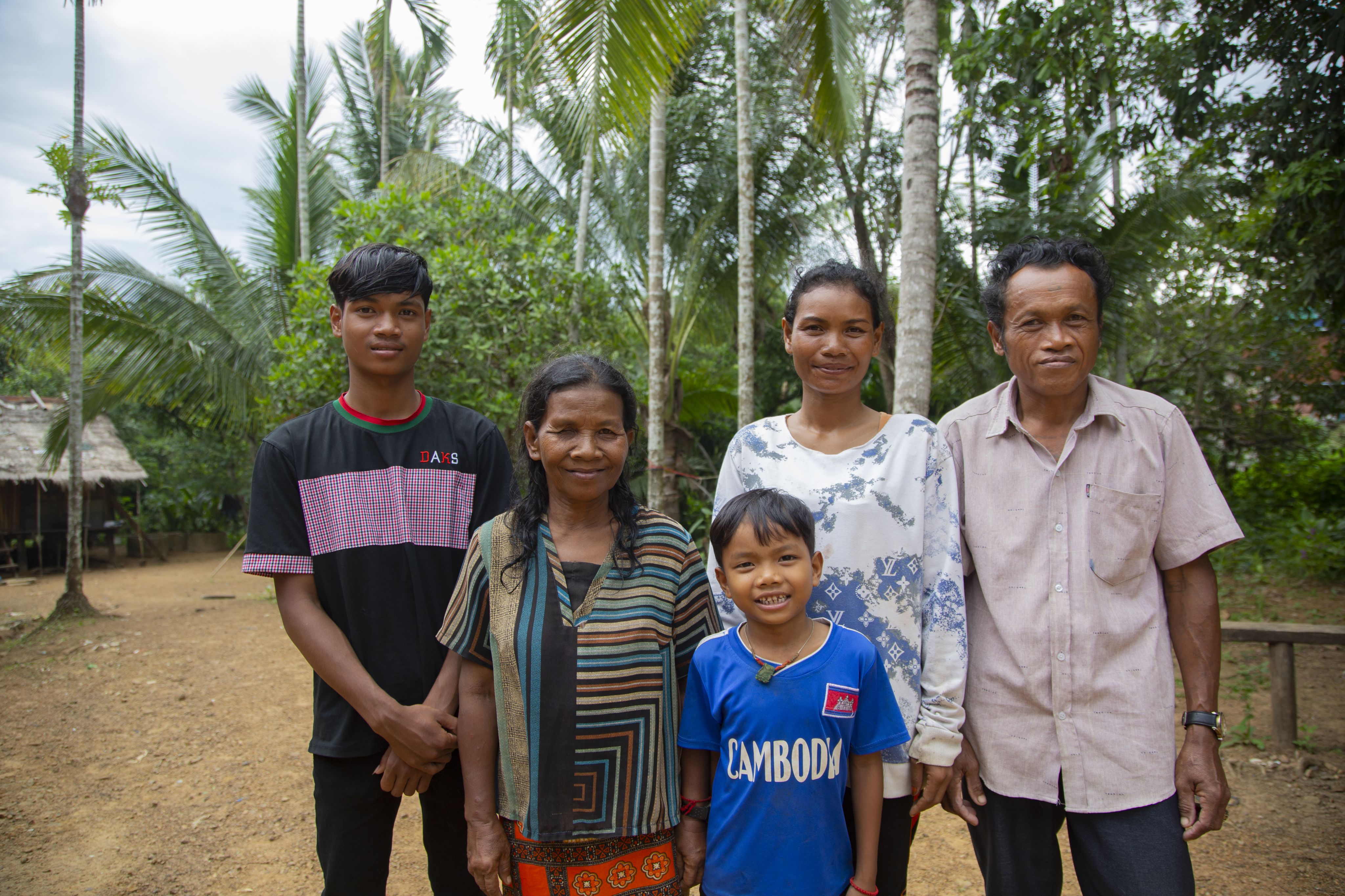 Farmer Bun Sophai (second from the left) with her family in Phnom Rai village.