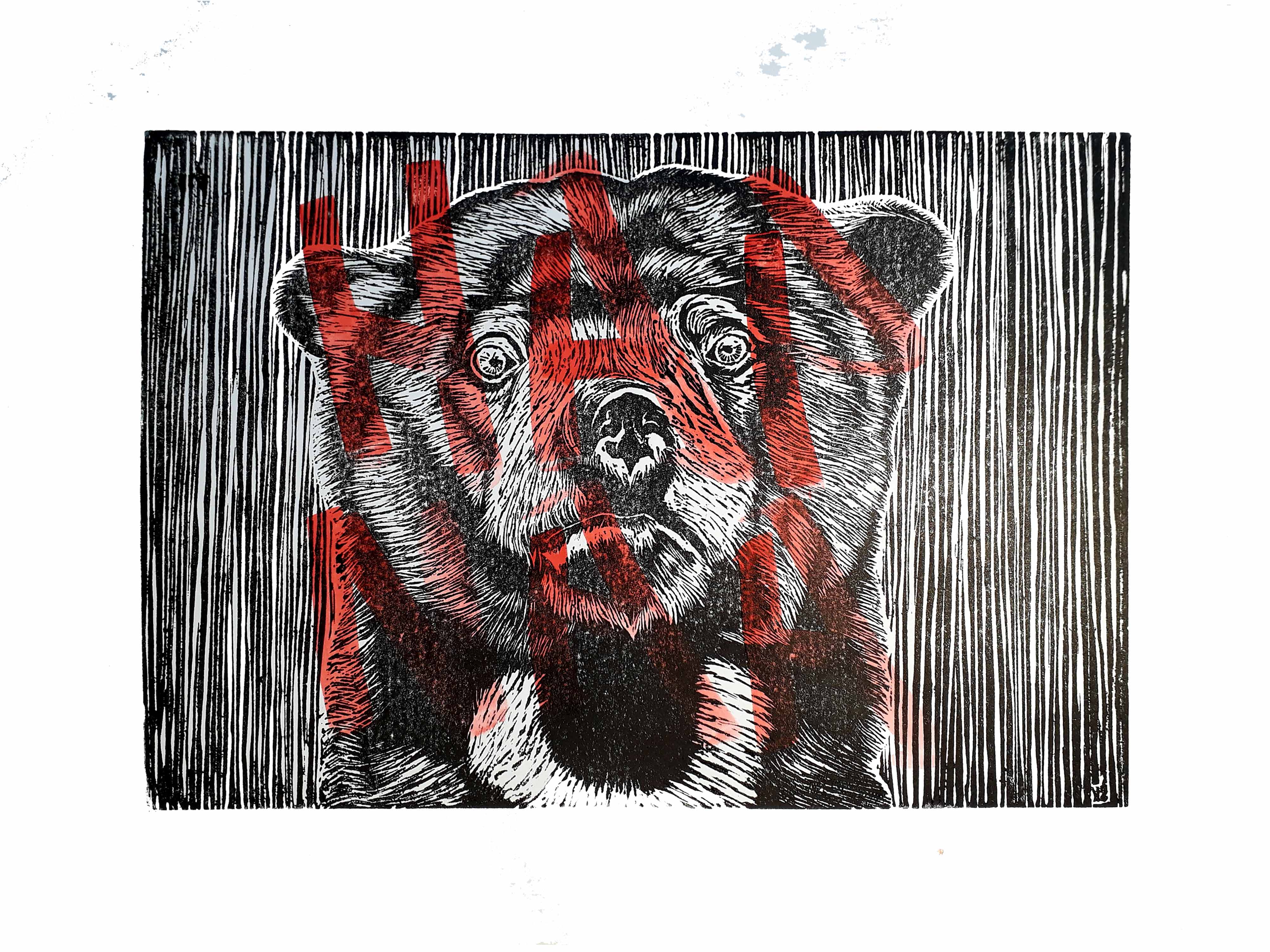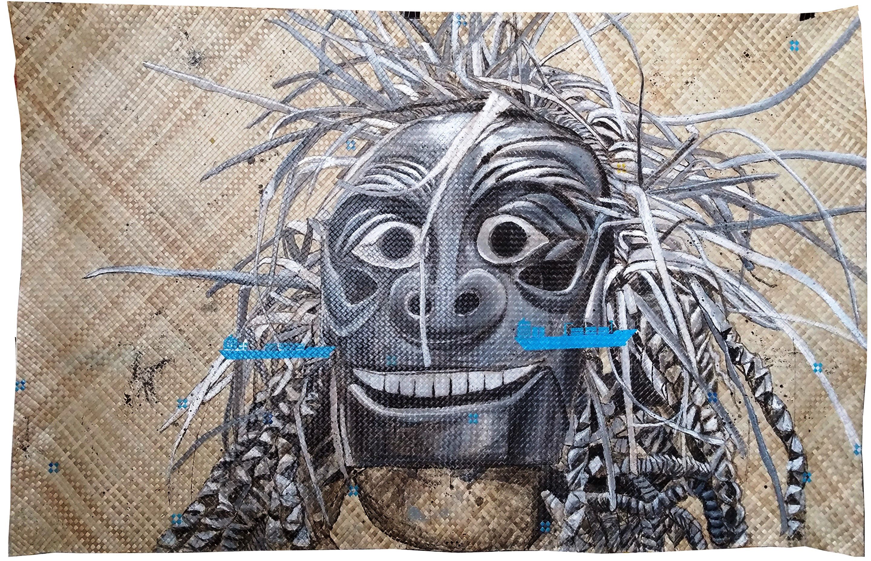 Shaq Koyok: "Redtape" / Acrylic on pandanous, 2019.