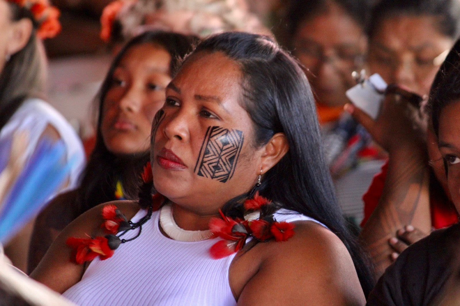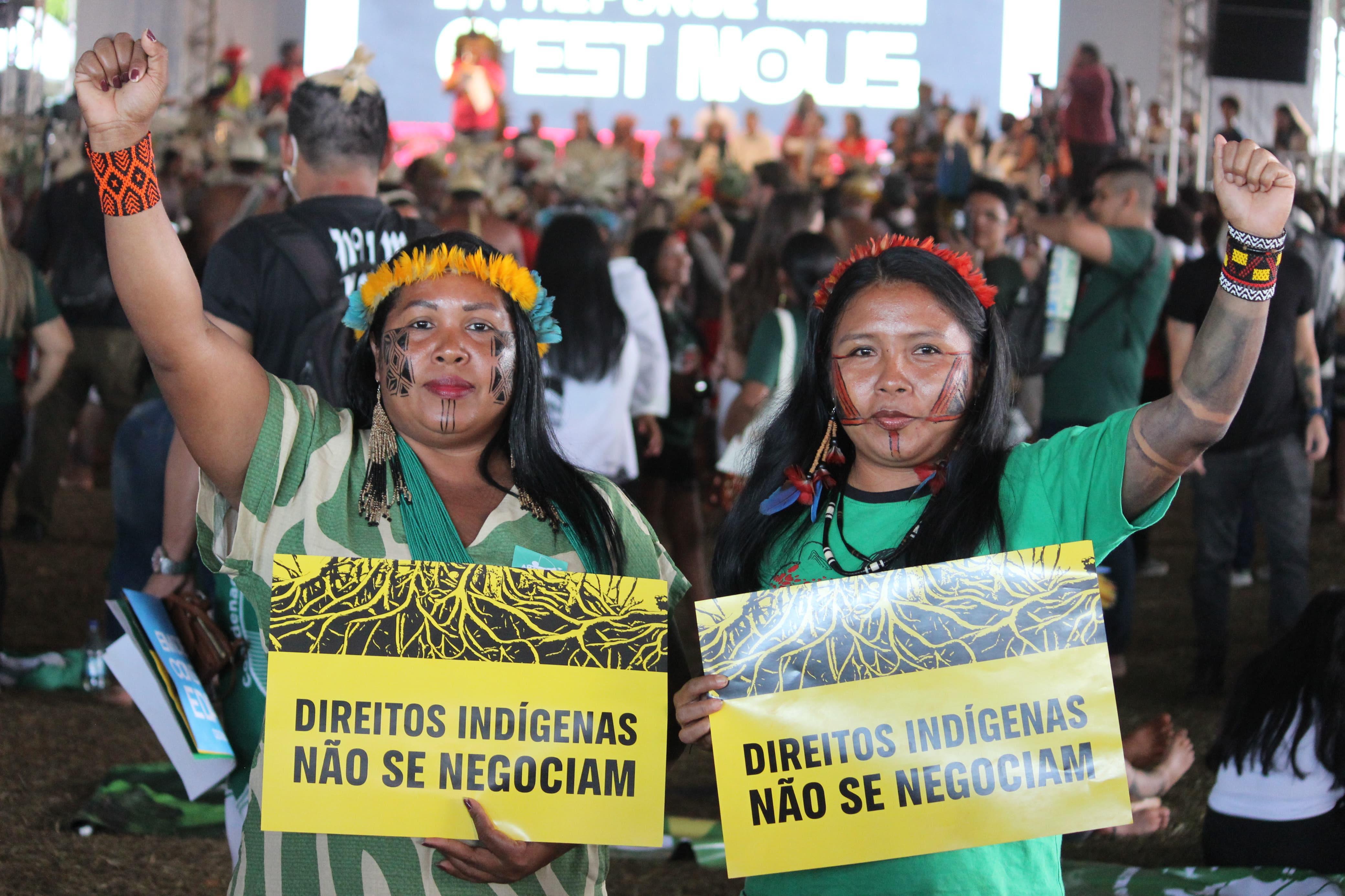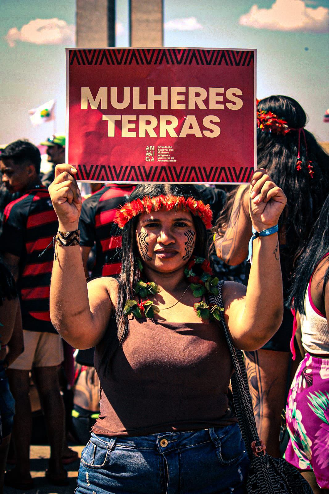 “Direitos Indígenas não se negociam” - “Indigenous rights are not negotiable.” The Forest Warriors raise their voices for justice and the protection of ancestral lands. © Guerreiras da Floresta
